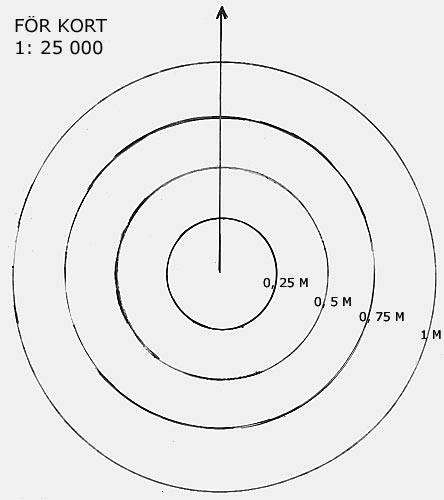 När man sen skiftar skala på radarn motsvarar skivans ringar fortfarande radarns fasta ringar; men nu med halva avståndet på 0,5 M-skalan och dubbla avståndet på 2 M-skalan o.s.v. En skiva gjord i skala 1:25 000 kan även användas i skärgårdskort 1:50 000 och kustkort 1:200 000 men då är det inbördes 0,5 respektive 2 M mellan ringarna. Eftersom Mercatorkortet växer med latituden duger bara skivan för den latitud den är avsedd för. Vid mycket exakt navigering har det hänt att upp till tre olika skivor använts i samma sjökort. AnvändningLägg skivan över sjökortet så att stävlinjen motsvarar kursen och dess "bild" stämmer med radarbilden. Skivans centrum är positionen. Skivans stävlinje orienteras i sjökortet både efter kompassen och efter ekon på och intill radarn stävlinje. Detta görs normalt på fri hand - vill man vara noga kan transportören användas. Stävlinjens riktning är viktigt för att snabbt kunna tyda en "stäv upp"-bild, jämföra den med sjökortsbilden samt malla in skivan rätt. Om man styr mot något identifierat eko - t.ex. en liten ö, ett sund, en boj - blir då även detta en stävlinjepejling. Dessutom är det ju viktigt att veta vart stäven pekar och åt vilket håll man rör sig. Skivans ringar mallas in mot landkonturerna runt om alldeles som radarbildens avståndsringar ligger i förhållande till omgivande landekon. I första hand väljs lätt identifierbara landekon med skarpa konturer och om möjligt stränder som tangerar en avståndsring. Men det är inte tvunget eftersom en strandkonturs läge mellan två ringar lätt kan uppskattas. En eventuell osäkerhet vägs upp av att skivan mallas in mot så många punkter som möjligt samt åt olika håll.
