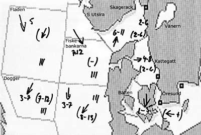 Fiskebankarna och syd Utsira: Omkring nordväst 7-12. I