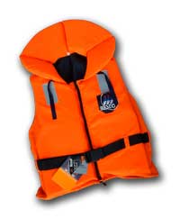 Västen skall ha reflexer, visselpipa samt lyftögla.