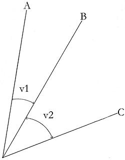 vinkelskillnaden mellan tre fasta objekt vilket inte
